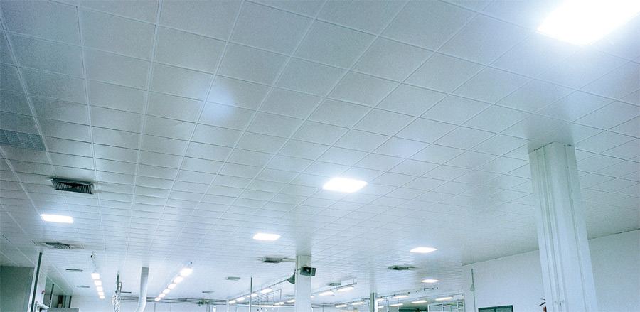 FLAT è la versione dei controsoffitti realizzata con pannelli in appoggio su struttura a vista base 24.