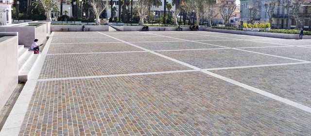 – Fornitura e posa di pavimento esterno in porfido squadrato piano cava,compreso ( di sabbia e cemento ). 70 € /mq